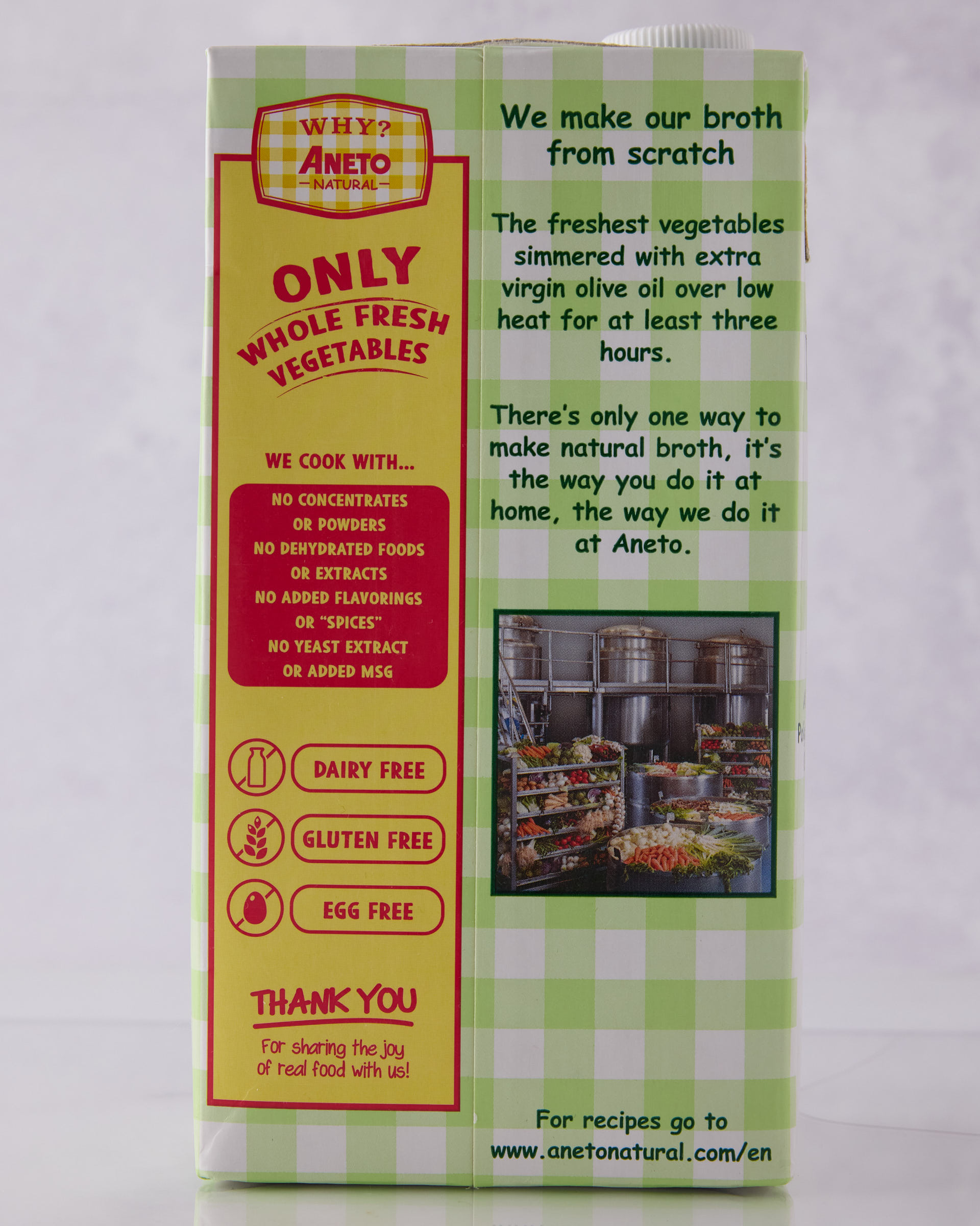 Most broths on the market are made from concentrates or powders – but not Aneto. Their choice is to select the highest quality meat, fish and vegetables, and simmer them over low heat for over 3 hours. The resulting product is a satisfying broth to sip on a chilly day, or a cooking base perfect for soups, stews, risotto, or paella.