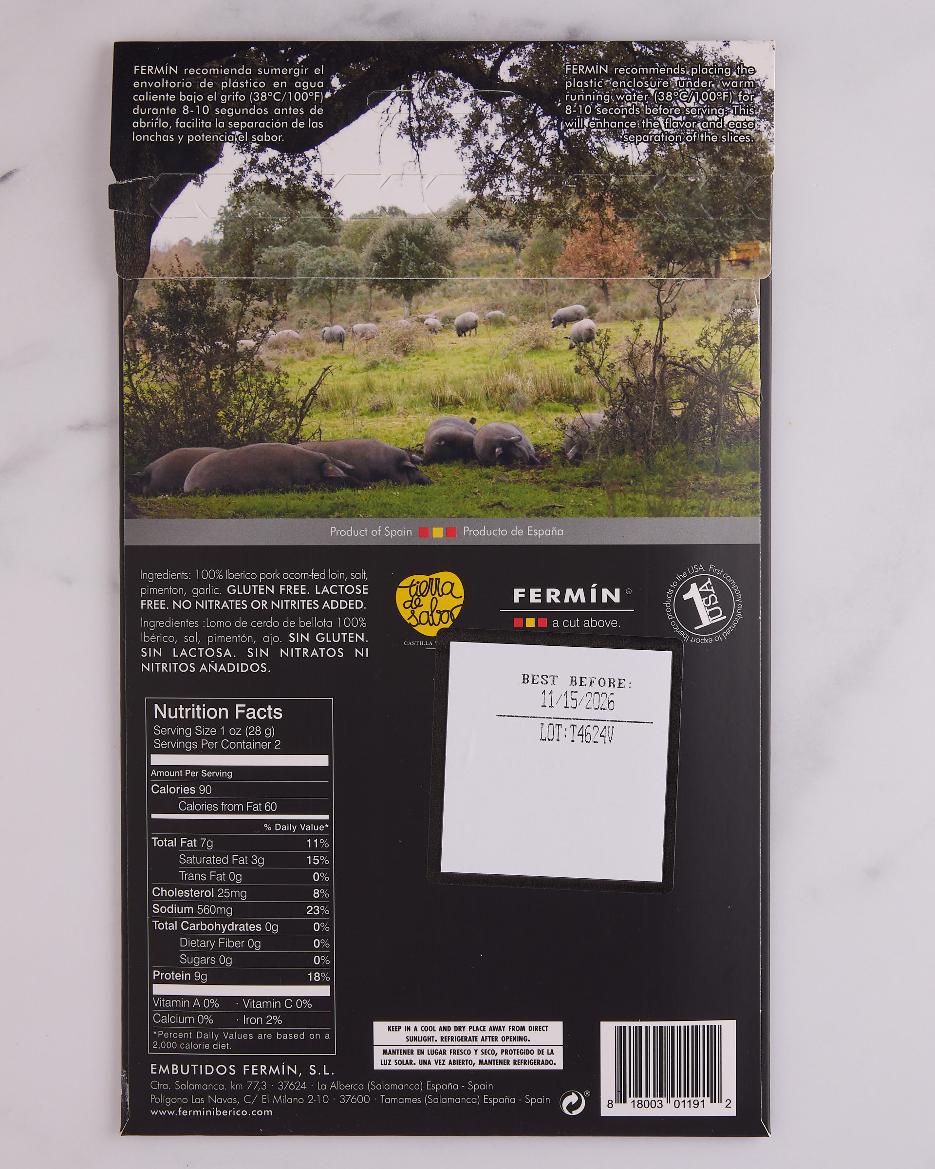 Crafted from acorn-fed, free-range Ibérico pigs, this cured loin showcases the same marbling and depth of flavor that make Ibérico pork world-renowned. Seasoned with paprika, garlic, and sea salt, then slowly cured, Fermín’s lomo offers a rich, nutty, and slightly smoky profile with a silky texture.
