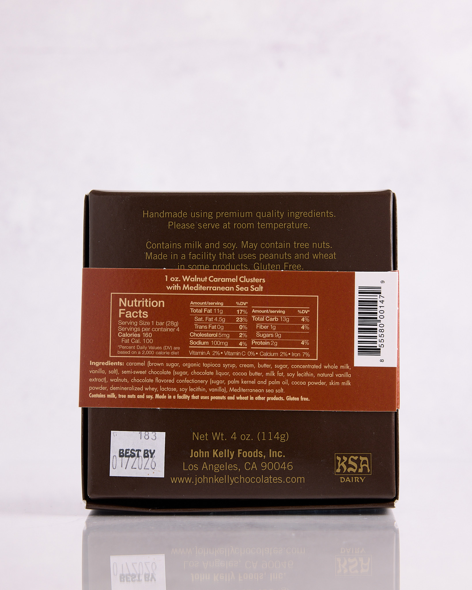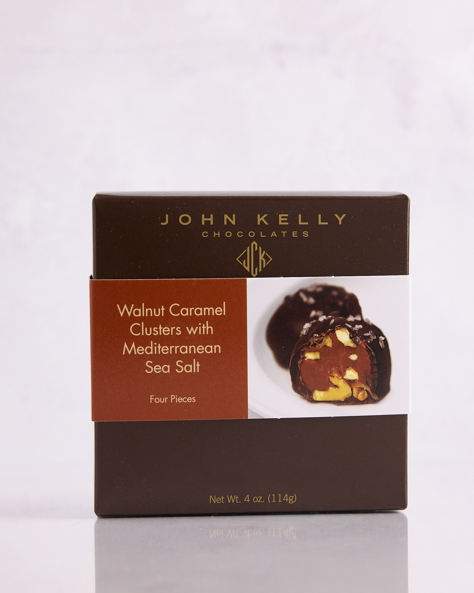 A decadent twist on a classic confection, these clusters combine creamy caramel, roasted walnuts, and rich chocolate fudge for a luxurious bite of texture and flavor. Handcrafted in small batches in Los Angeles, John Kelly’s signature truffle fudge coating makes each piece irresistibly smooth and indulgent.