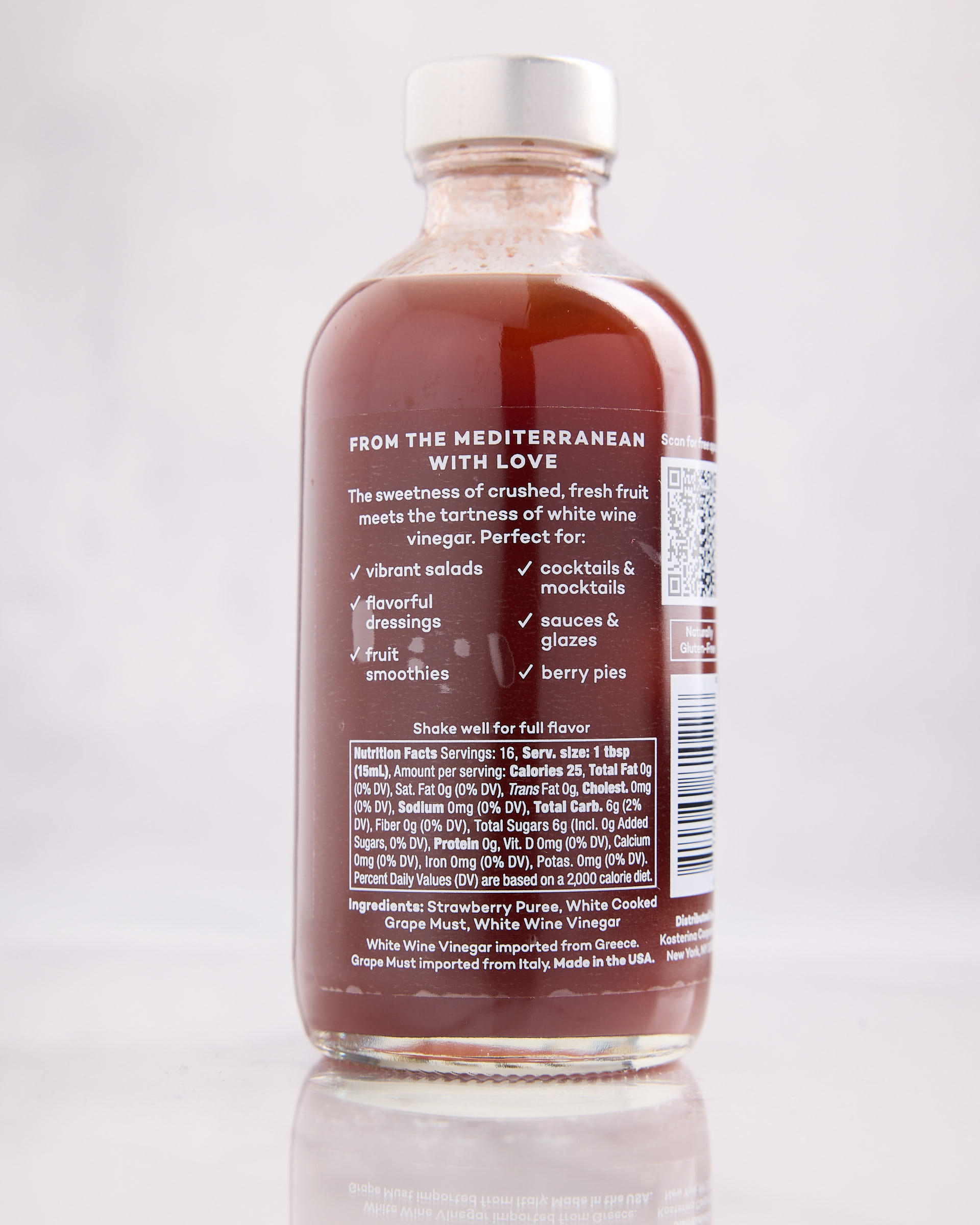 Crafted in Greece, this fruit-forward vinegar is made by blending sweet crushed strawberries with premium white wine vinegar. The result is a bright, tangy condiment with natural berry sweetness and a refreshing finish — perfect for adding a modern Mediterranean twist to your dishes.