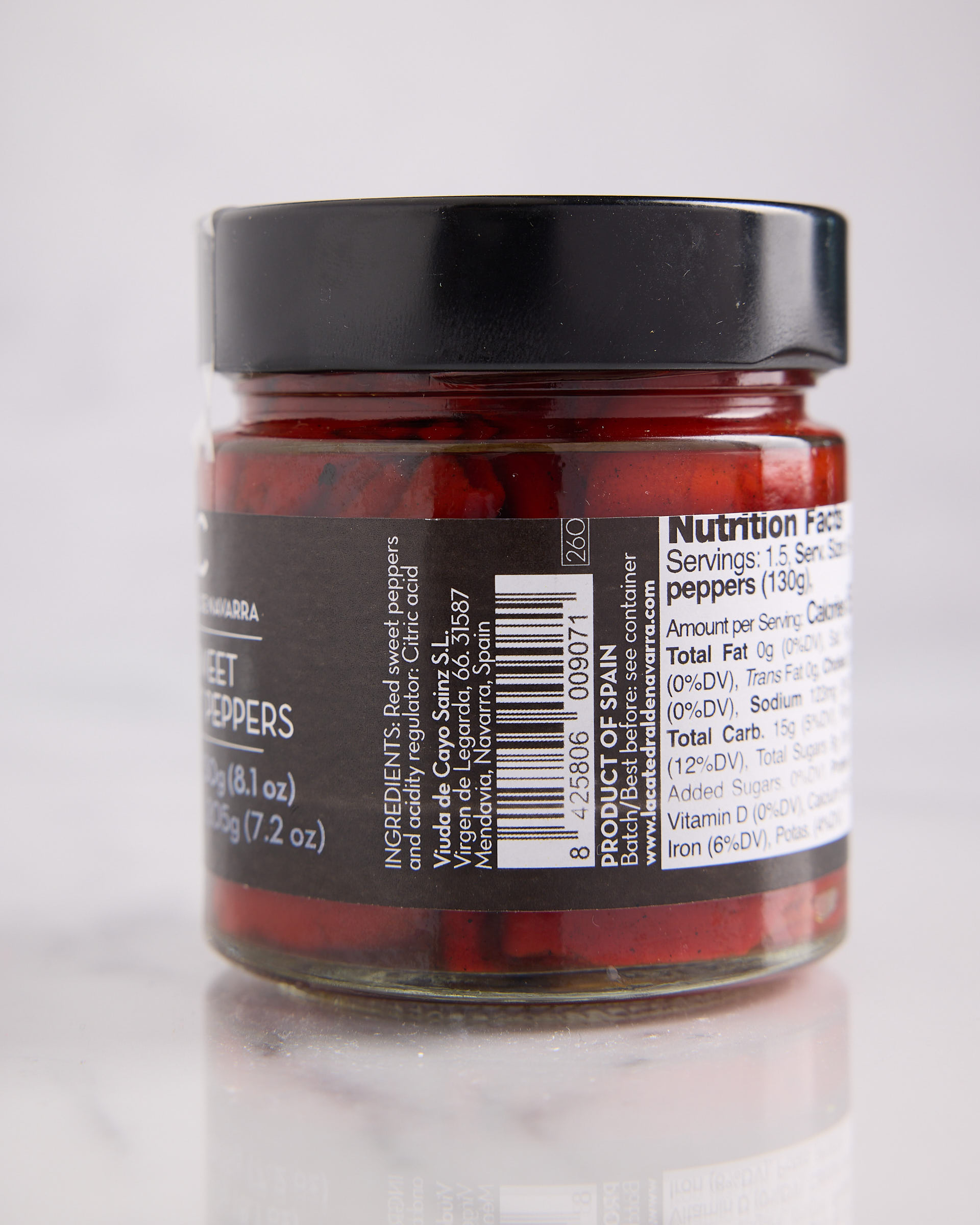 Hand-picked in Spain’s Navarra region, these vibrant red piquillo peppers are fire-roasted, peeled, and packed to preserve their sweet, smoky flavor. Tender and delicate, they’re a staple of Spanish tapas and Mediterranean cooking.