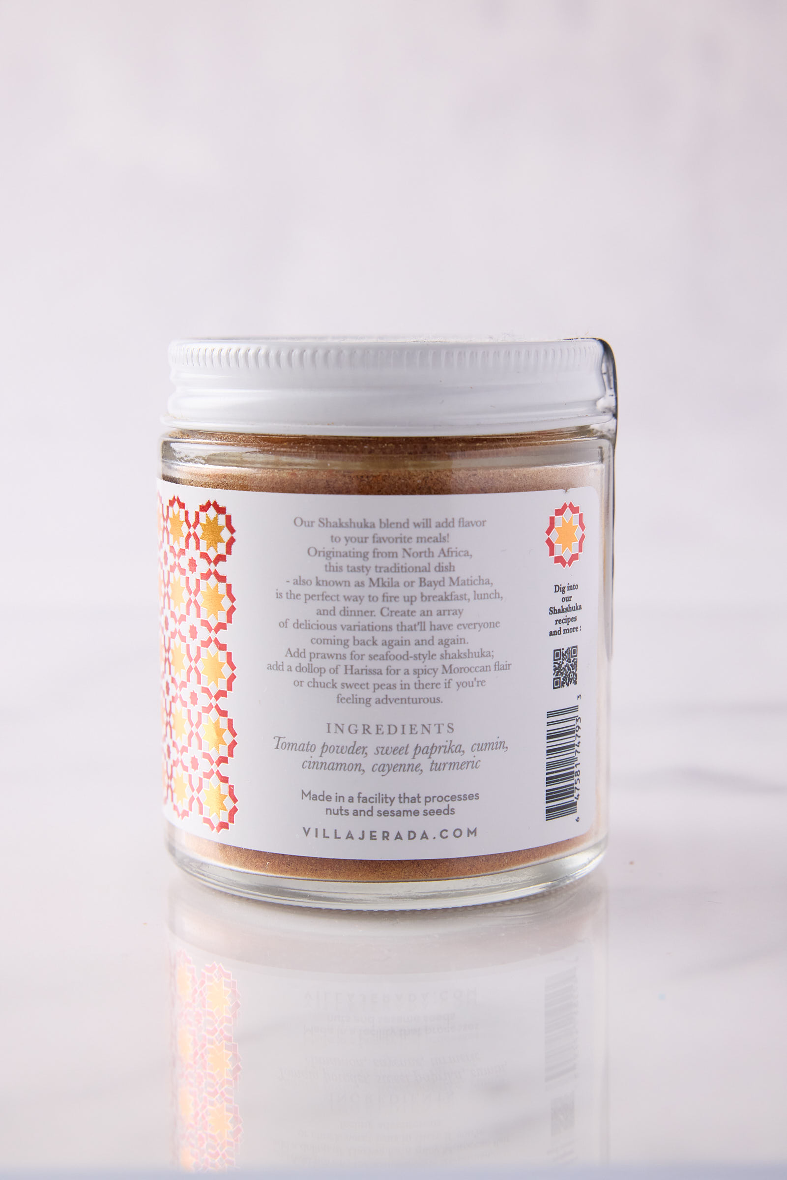 A vibrant spice mix crafted to capture the flavors of the classic North African and Middle Eastern dish, shakshuka. Villa Jerada’s blend of cumin, paprika, garlic, and warm spices creates a rich, aromatic base that makes cooking this iconic tomato-and-egg dish simple and delicious.